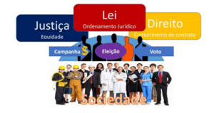 Oferecendo concretude ao diagnóstico que elaboramos, o demonstraremos a seguir tomando como exemplo a articulação conceitual entre Direito, Lei, Justiça e Política que temos identificado a partir da sala de aula, mas também na sala dos professores: Identificamos que há uma compreensão limitada da Lei, enquanto peça-chave e construto formal do ordenamento jurídico da Sociedade, como produto da Política.
