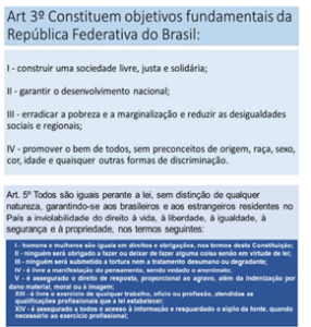 Como prova legal de que esta estrutura atenta contra o senso de Justiça da Sociedade, é possível constatar que em nossa Constituição Federal de 1988, diz que o critério para a cobrança dos impostos é a capacidade econômica dos contribuintes. Mas isto não é observado. No Imposto de Renda, por exemplo, a maior alíquota cobra 27,5% de quem ganha mais que 4.664,68 em diante. Ou seja, considera-se que quem ganha 5 mil reais tem a mesma capacidade econômica de quem ganha 500 mil reais, confirmando que o leão é mais brabo com quem pode menos. Indo um pouco mais além, observe, a seguir, as três referências Constitucionais que considero mais significativas para a definição da Sociedade que queremos, tal como projetada pela nossa Lei Magna, revelando o senso de Justiça firmado em 88 pelo Congresso Nacional Constituinte.