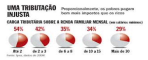 Por isso, os especialistas dizem que nossa Estrutura Tributária é Regressiva. E a Estrutura Tributária é uma Lei. Quem a fez? Com que motivações e convicções filosóficas? Perfil do Deputado Federal eleito em 2014, INESC Como explicar que são os mais pobres, individualmente e coletivamente que suportam a maior carga tributária. São as leis tributárias dos países que define de onde vem a arrecadação dos impostos.
